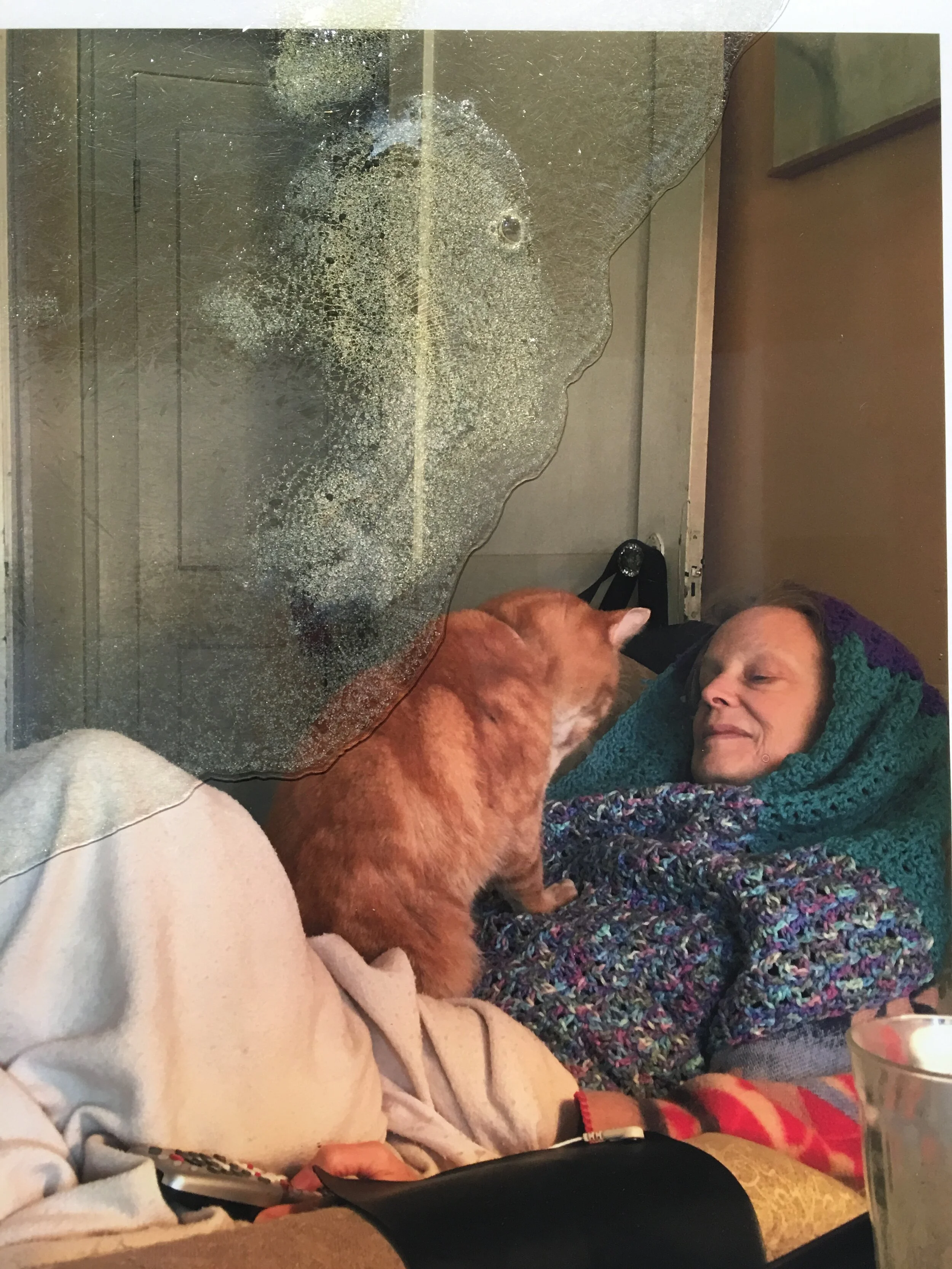 The three photos in this series were taken during my mother’s journey through cancer. It was a visceral and raw final year together, and the egg white on top of the found frames serves as a physical testament to those feelings while also creating a visual barrier, obscuring the memories of that period of time.